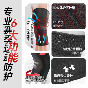 安德玛(Under Armour)运动护膝保暖半月板篮球跑步专用髌骨男女老寒腿登山膝盖护具 白L