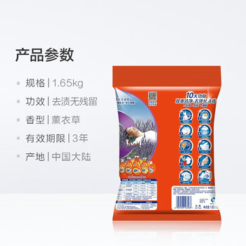 汰渍 二合一洗衣粉淡雅薰香 强效去渍持久留香大规格护色洗衣粉 薰衣草1.65kg/袋