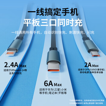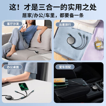 OKSJ 数据线三合一充电器线66w超级快充一拖三伸缩多功能车载多头 适用于华为Type-C\/苹果安卓手机