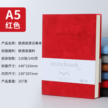 嘉然恒 商务肤感羊巴皮笔记本本子A5加厚软皮面记事本笔记本子文具高颜值工作日志会议记录本可定制 红色