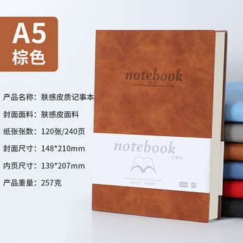 嘉然恒 商务肤感羊巴皮笔记本本子A5加厚软皮面记事本笔记本子文具高颜值工作日志会议记录本可定制 棕色