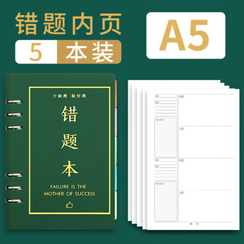 法拉蒙 错题本活页可拆卸笔记本子大学生考研加厚纠错本小学初中生数学英语改错作业本A5/1个壳+5本芯/270张