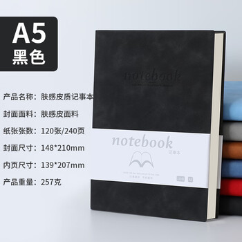 嘉然恒 商务肤感羊巴皮笔记本本子A5加厚软皮面记事本笔记本子文具高颜值工作日志会议记录本可定制 黑色