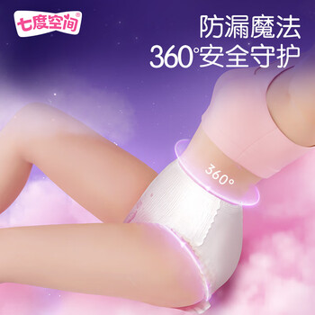 七度空间萌睡裤超长安睡裤夜用裤型卫生巾套装 M-L码12片【新国标认证】