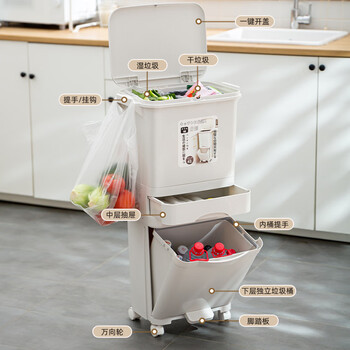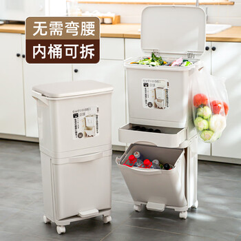 朴厨厨房垃圾桶42L双内桶分类垃圾桶家用带盖大号容量干湿分离厨余