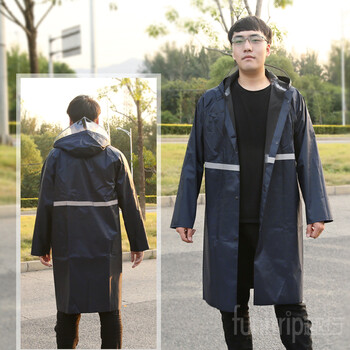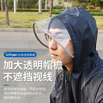 趣行 户外长款连体雨披 加厚反光型牛津布成非一次性雨衣 防飞沫防唾液简易防护服 藏青色