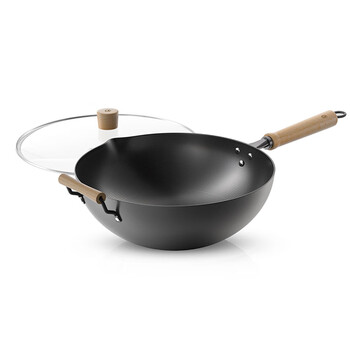 京东京造 炒锅 铁锅炒菜电磁炉燃气灶平底【健康无涂层】进口极铁带盖30cm