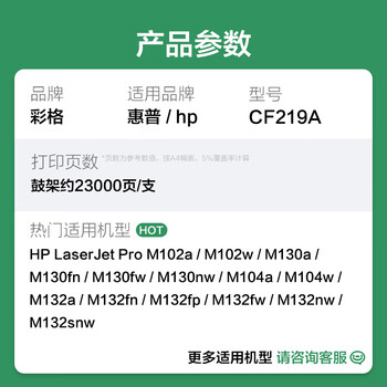彩格CF219A硒鼓组件适用惠普hp18A硒鼓m132nw m132a m104a m104w成像鼓M132fw 带芯片成像鼓不含粉盒