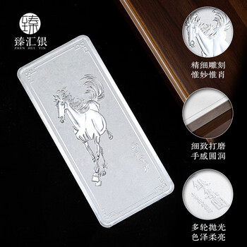 臻汇银999.9足银银条银砖白银摆件银料收藏礼物马到成功20g