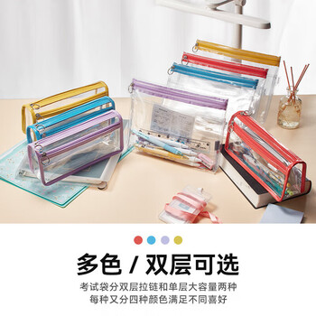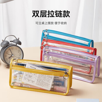 樱花(SAKURA)透明考试笔袋简约男女学生用大容量笔袋糖果色小清新防水文具袋-紫色