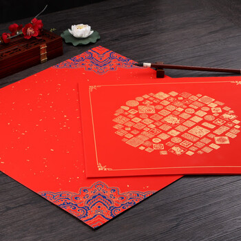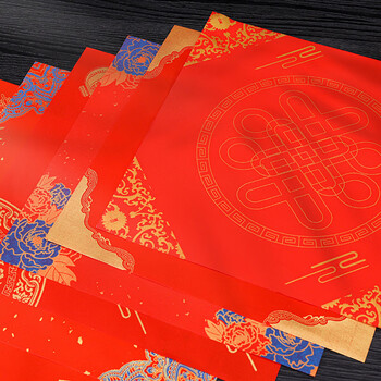 一海堂文化一海堂 春联对联纸万年红宣纸对子空白福字斗方专用纸毛笔宣纸传统春联红纸 福字款-斗方34CM/20张