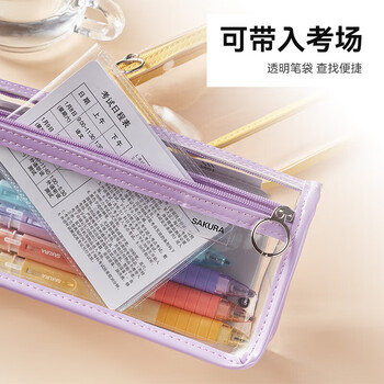 樱花(SAKURA)透明考试笔袋简约男女学生用大容量笔袋糖果色小清新防水文具袋-黄色