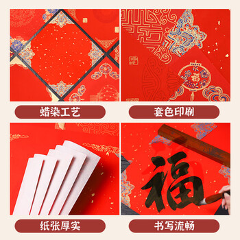 一海堂 文化 春联纸 结婚乔迁万年红宣纸对子空白福字斗方专用纸毛笔宣纸传统春联红纸 繁华似锦斗方34CM/20张