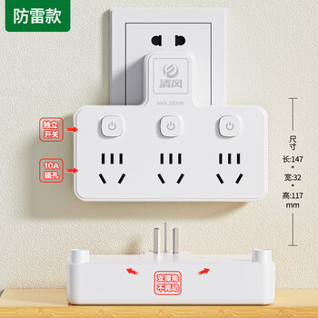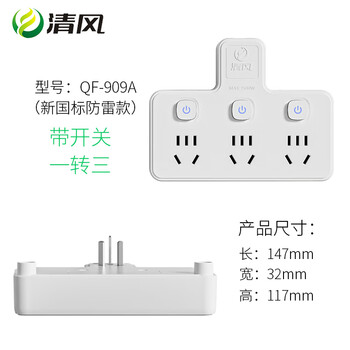 清风(kyfen)QF-909A 一转三独立开关带安全保护门电源转换器 新国标 防雷无线白色
