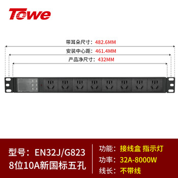 TOWE同为32A大功率8000W 8位国标五孔10APDU机柜插座带自接线盒工程接线板pdu插线板自接线机柜插排