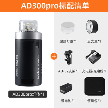灯体*1 灯管*1 玻璃灯罩*1 反光罩*1 AD-E2支架*1 充电器*1 电源线*1 电池*1 便携包*1 说明书*1