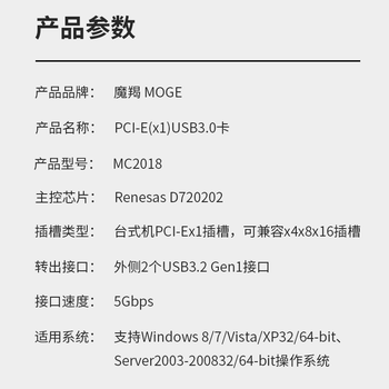MOGE 魔羯 MC2018 PCIEx1 4口USB3.0扩展卡 × 1