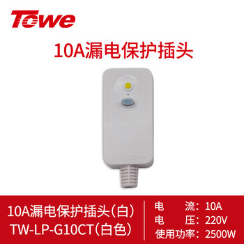 TOWE同为漏电保护插头10A白色空调热水器电暖器自行接线可拆卸 TW-LP-G10CT 白色