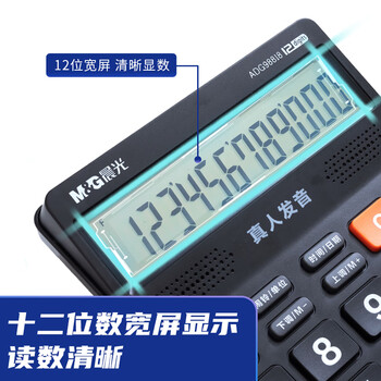 晨光(M&G)文具语音型计算器 818冲锋号桌面计算机 学生/办公通用12位大屏幕计算器 黑色单个装ADG98818