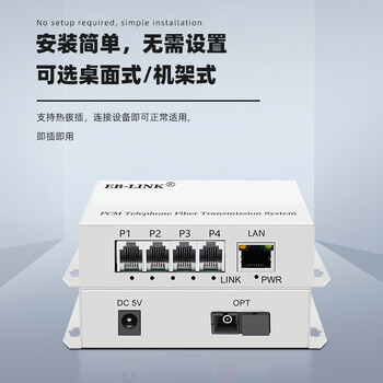 EB-LINK 电话光端机4路电话+1路网络PCM语音光端机音频对讲收发器电话光纤转换器大方口SC接口