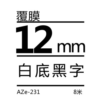 得印标签机色带不干胶标签纸色带12mm AZe-231白底黑字TZc TZe 适用兄弟PT-E115B PT-D210 PT-P300BT