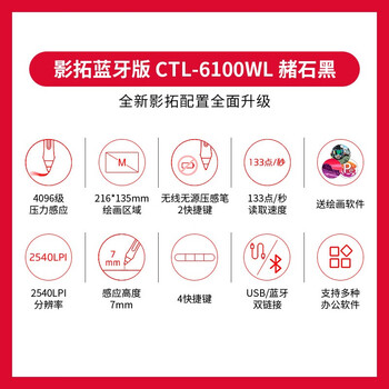 Wacom 数位板 手绘板 手写板连电脑手机电子绘画板 蓝牙写字板教学网课CTL-6100WLA/K0-F黑色中号