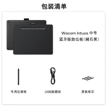 数位板、Wacom Pen 4K、USB线、3支替换笔芯(在笔中)