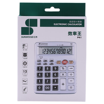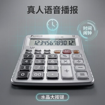 三木(SUNWOOD)效率王系列 大屏真人语音12位通用桌面计算器/附两节7号电池 P41