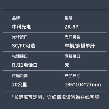 电脑、办公---网络产品---网络配件中科光电ZK-8P-20KM/FC