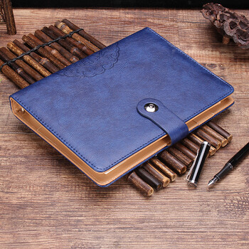 申士(SHEN SHI)B5/16K 9孔商务按扣活页皮面本 办公记事笔记本子95张1本 jd19116深蓝色