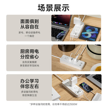 良工(lengon)安全智能USB插座 分控3位1.8米 插排/插板/插线板/排插/拖线板/2A1C多功能接线板 E04U-1.8
