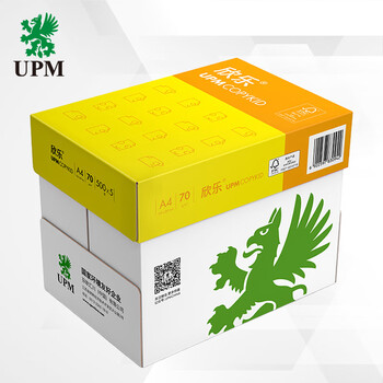 UPM黄欣乐 70g A4打印纸 全木浆复印纸 500张/包 5包/箱(2500张)