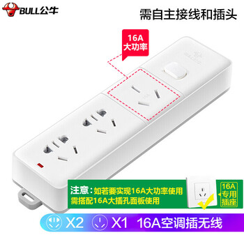 公牛(BULL)大功率16A插座16a排插/插排插线板接线板 适用空调热水器电暖气 3位无线总控需自行接线和插头406D