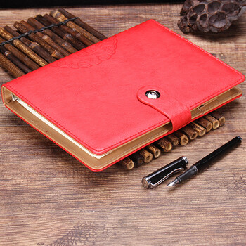 申士(SHEN SHI)B5/16K 9孔商务按扣活页皮面本 办公记事笔记本子jd19116 95张红色1本