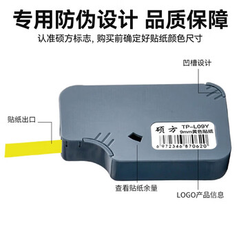 硕方线号机贴纸 9mm黄色不干胶贴纸带TP60i TP66i打号机打码机打字机色带贴纸TP-L09Y