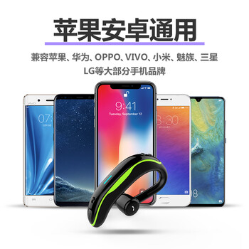 Masentek F600无线蓝牙耳机耳麦单耳入耳挂耳式超长续航运动跑步游戏 适用苹果华为小米OPPO等手机电脑黑绿