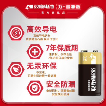 双鹿 9V碱性电池10粒卡/盒 适用于仪器仪表/万用表/话筒/麦克风/对讲机/报警器 6LR61/叠层电池