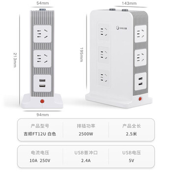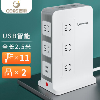 吉顺立式插座办公牛插排USB多功能桌面排插线板拖接线板新抗电涌国标分控 2.5米