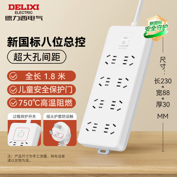 德力西(DELIXI) 3C认证国标插座/插线板/插排/排插/拖线板/插板/接线板 8位五孔总控开关 1.8米