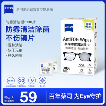 蔡司 眼镜防雾清洁湿巾纸巾 镜片镜头游泳潜水滑雪护目镜近视眼镜防起雾 防雾纸巾30片装