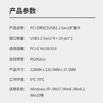 魔羯(MOGE)八口扩展USB3.0转接卡PCIE转usb3.2 Gen1服务器工业控制 高速相机 MC2047