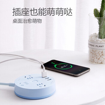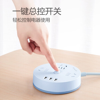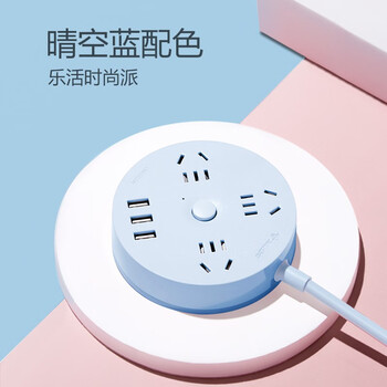 公牛(BULL)插座/插线板/插排/排插/拖线板 圆形插座 3usb接口+3孔总控 1.8米 晴空蓝 GN-R203U