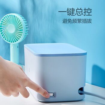 公牛收纳盒延长线插座/插线板/插排/排插/接线板/拖线板/7位全长1.5米 晴空蓝GN-F2161