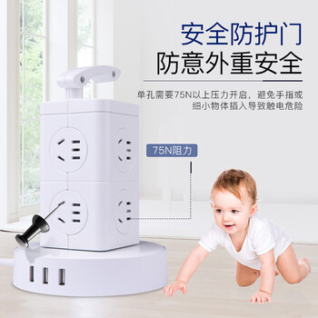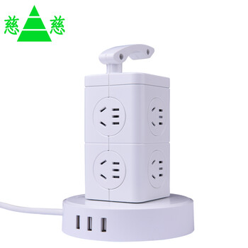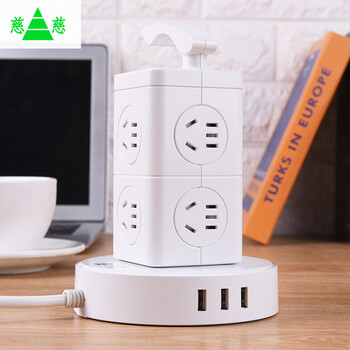 慈慈 USB智能立式插座魔立方插座塔式插座插排插线板 8位2层多孔国标总控排插接线板 全长2.8米