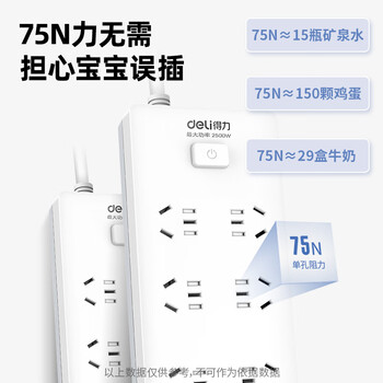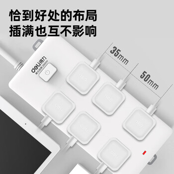 得力(deli)3C认证国标安全插座 插排/插线板/接线板/排插/拖线板 50mm大孔距 总控开关 6组合孔3米 18267