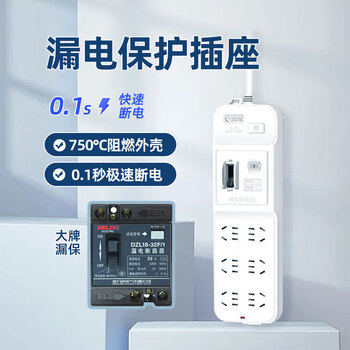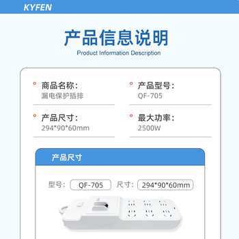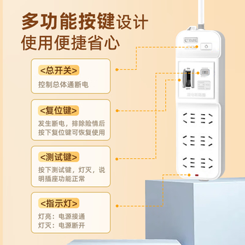 清风(kyfen)插座/插线板/插排/排插/接线板/拖线板 保护门 总控开关 机械式漏电保护 六位两孔 全长3米