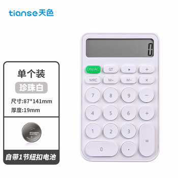 天色 糖果色简约计算器 12位大屏时尚桌面计算机平板便携 办公用品 TS-1721 珍珠白