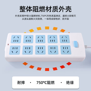 慈慈 国标插座/插排/插线板/排插/插板/拖线板/接线板/过载保护 10位总控 全长3米 6014