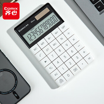 齐心(Comix)双电源时尚计算器 轻薄机身平板按键桌面计算机 办公用品 蓝色 C-1371