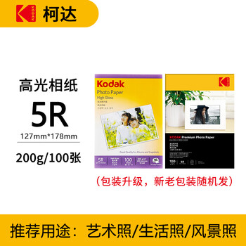 KODAK柯达 5R/7英寸 200g高光面照片纸/喷墨打印相片纸/相纸 100张装 5740-313
